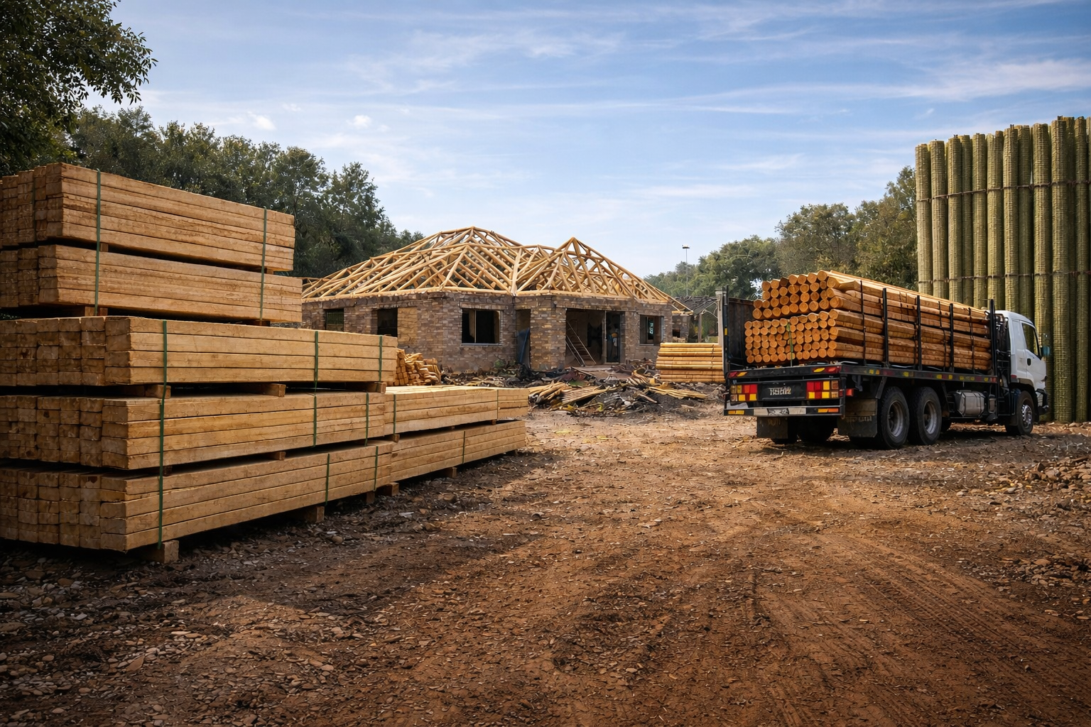 SANS-graded structural timber, treated and untreated, supplied in bulk quantities or through project-based supply agreements.